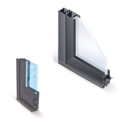 Fenêtre, porte-fenêtre et porte d’entrée « à frappe » sans rupture de pont thermique, épaisseur des dormants 51 mm, des ouvrants 58.4 mm.