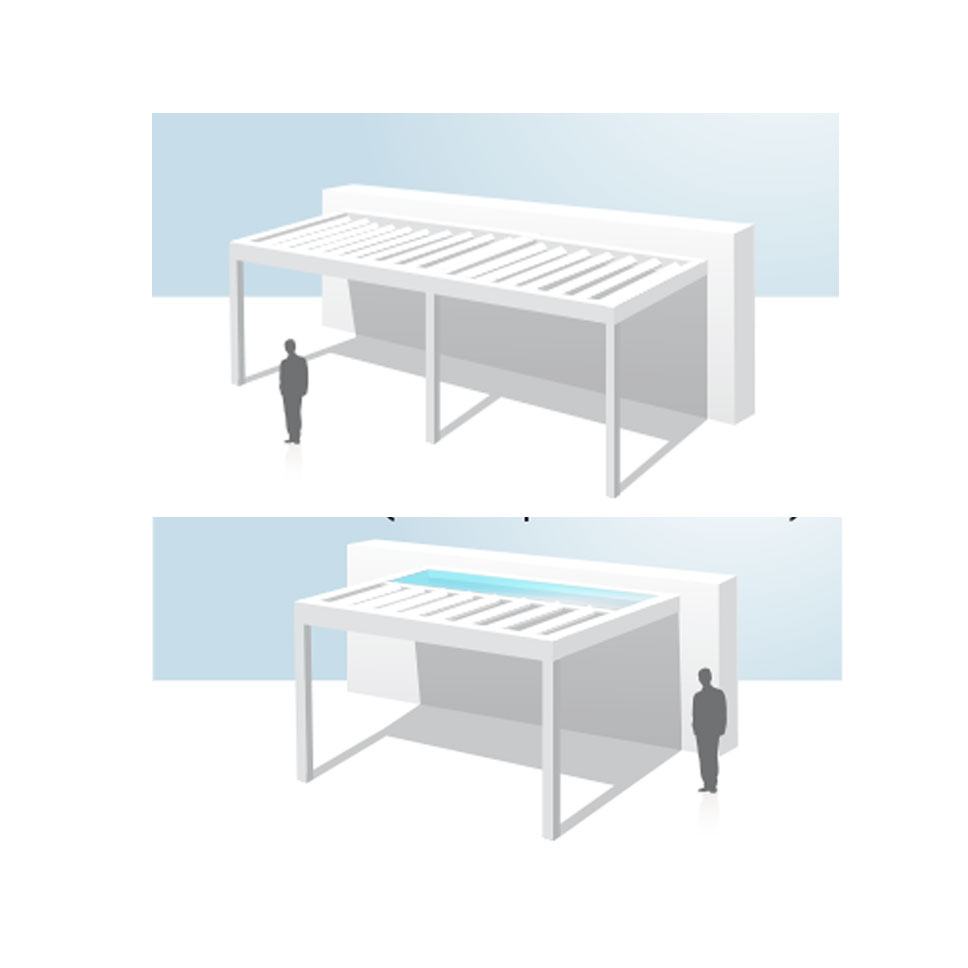 Sa portée jusqu’à 12 mètres autorise de grandes dimensions et de nombreuses configurations grâce à ses modules d’angles, ses poteaux déportés. Elle dispose de nombreuses options : gestion climatique, éclairages, fermetures, chauffage, brumisation… Personnalisable à l’extrême, la pergola WALLIS & OUTDOOR® est un produit unique.